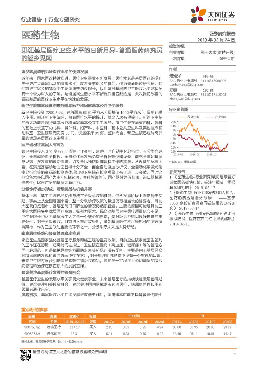 天风证券:医药生物行业专题研究:见证基层医疗卫生水平的日新月异-普通医药研究员的返乡见闻.pdf