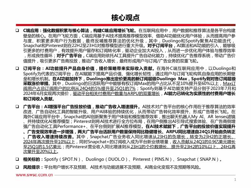 西南证券:AI专题·从海外C端应用看AI进展:订阅服务迎来价值增量,广告平台有望持续增长.pdf