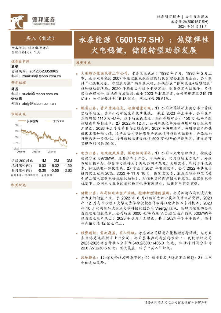 德邦证券:永泰能源(600157)-焦煤弹性火电稳健,储能转型助推发展.pdf