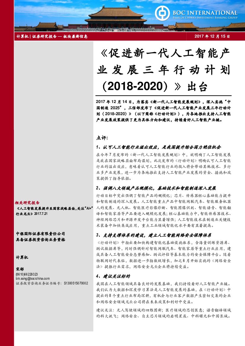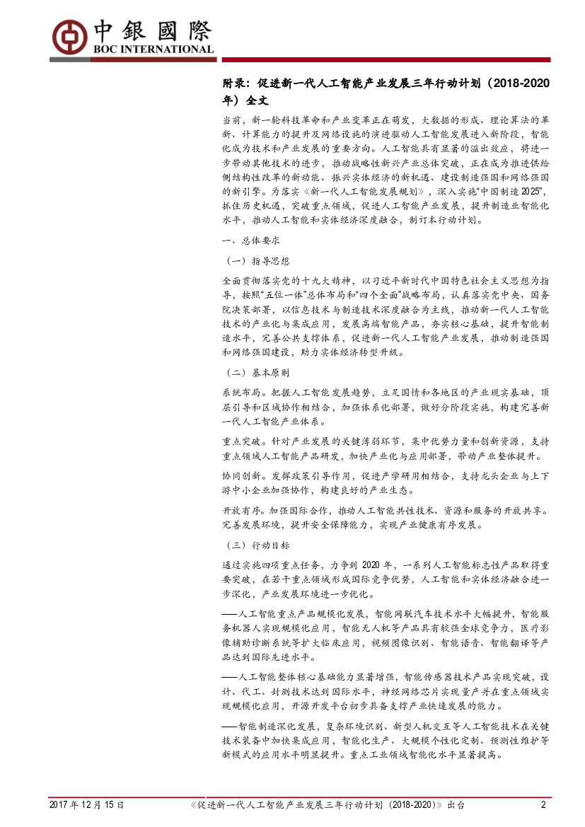 中银国际:《促进新一代人工智能产业发展三年行动计划(2018-2020)》出台.pdf