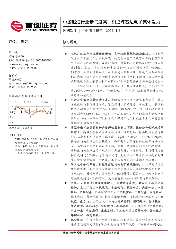 首创证券:国防军工行业简评报告:中游锻造行业景气度高,相控阵雷达电子集体发力.pdf