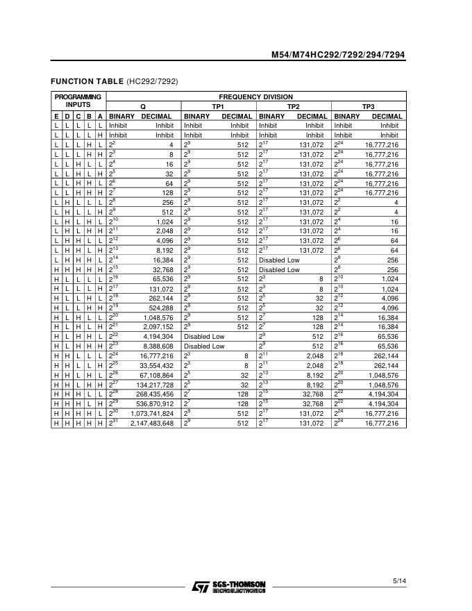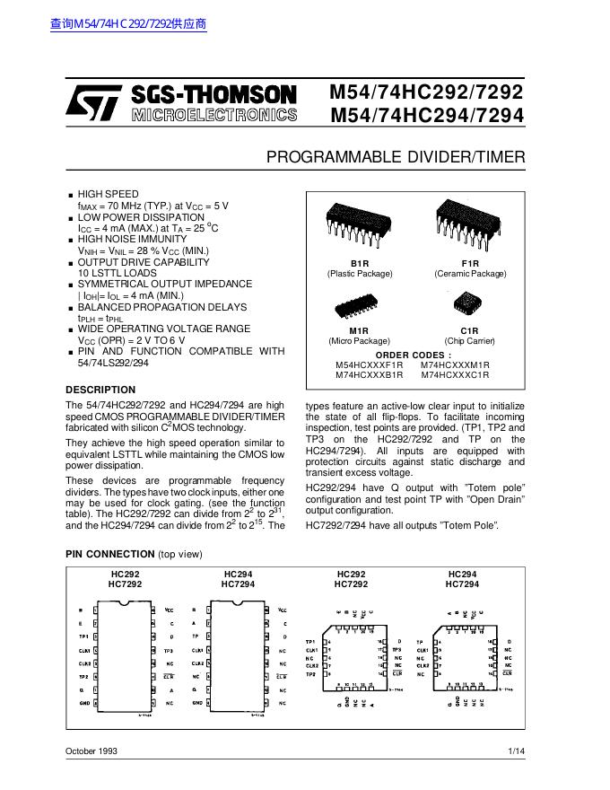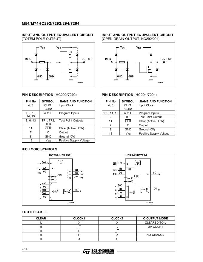 ST M54/74HC292/7292, M54/74HC294/7294 数据手册.pdf