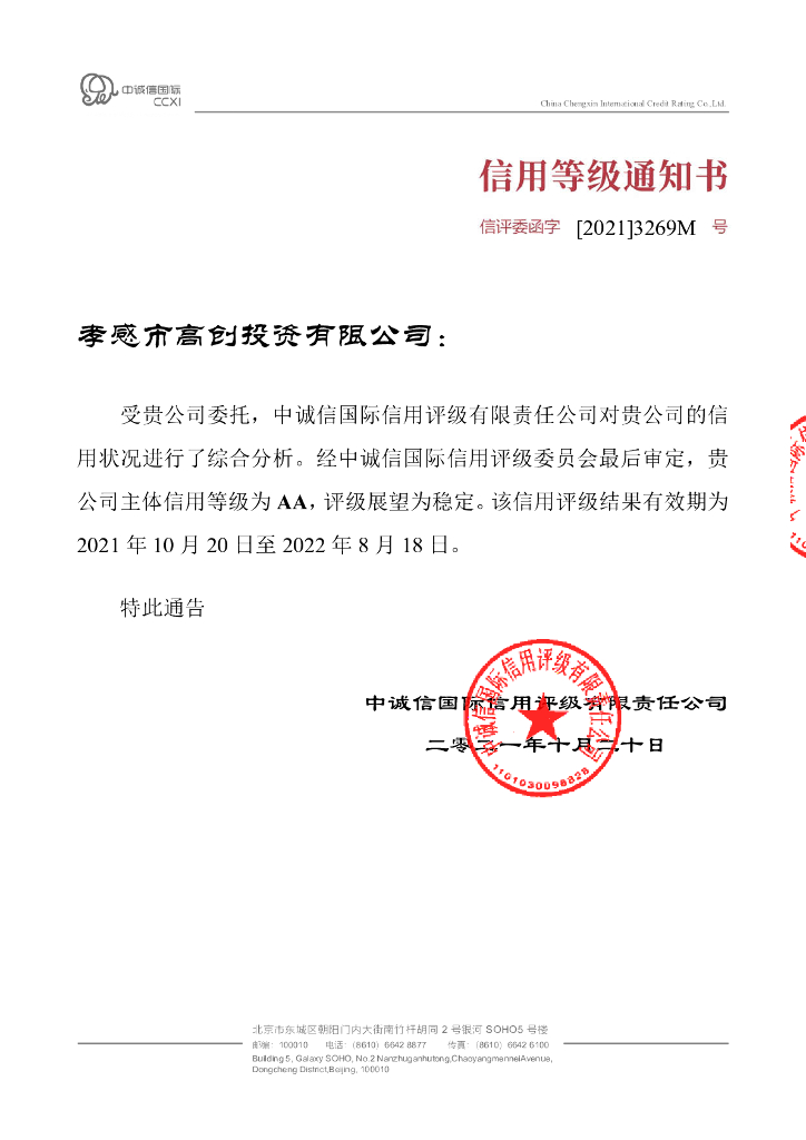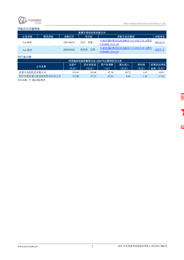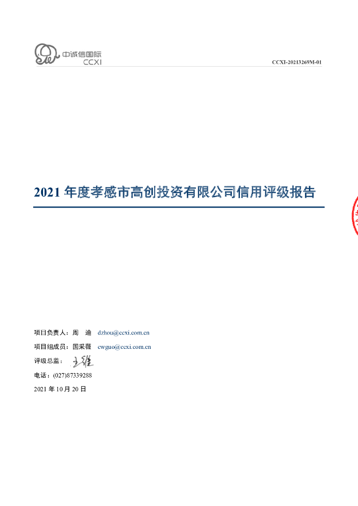 中诚信:孝感市高创投资有限公司主体信用评级报告及跟踪评级安排.pdf