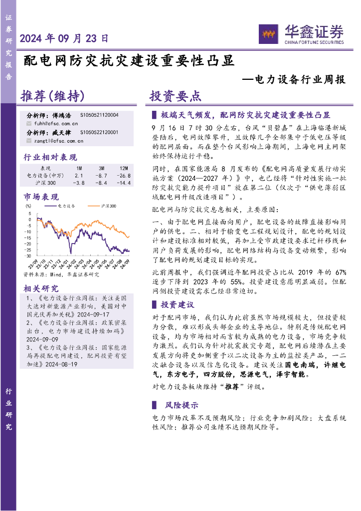 华鑫证券:电力设备行业周报:配电网防灾抗灾建设重要性凸显.pdf