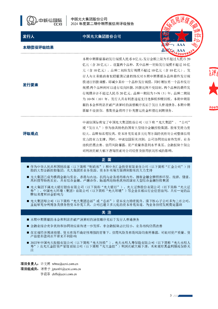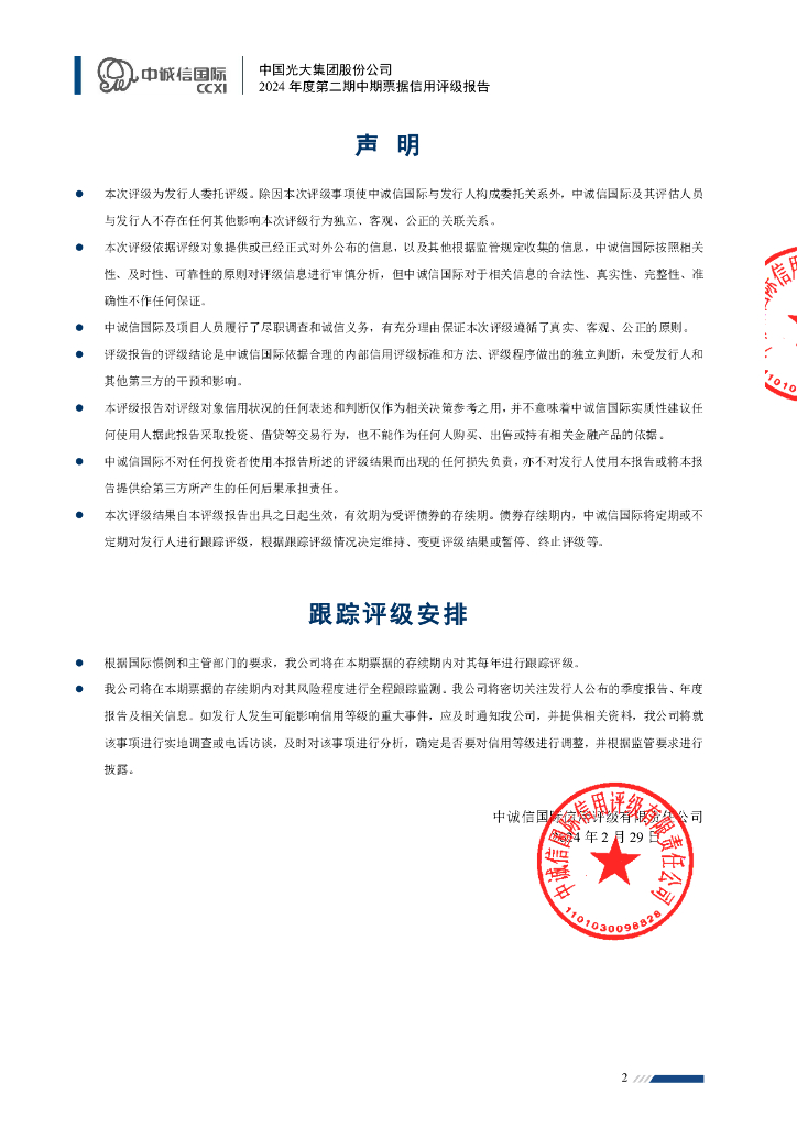 中诚信:中国光大集团股份公司2024年度第二期中期票据信用评级报告.pdf