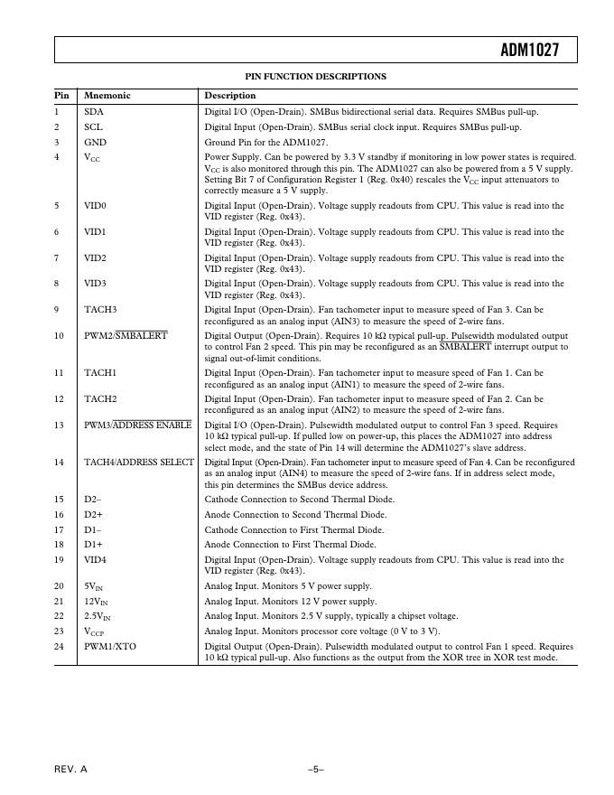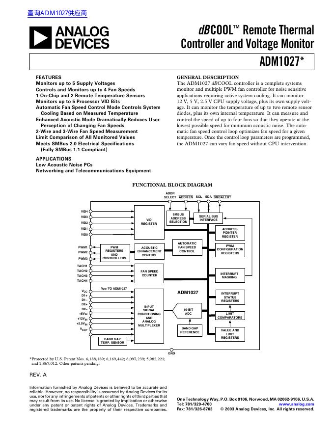 ANALOG DEVICES ADM1027* dBCOOL Remote Thermal Controller and Voltage Monitor 数据手册.pdf