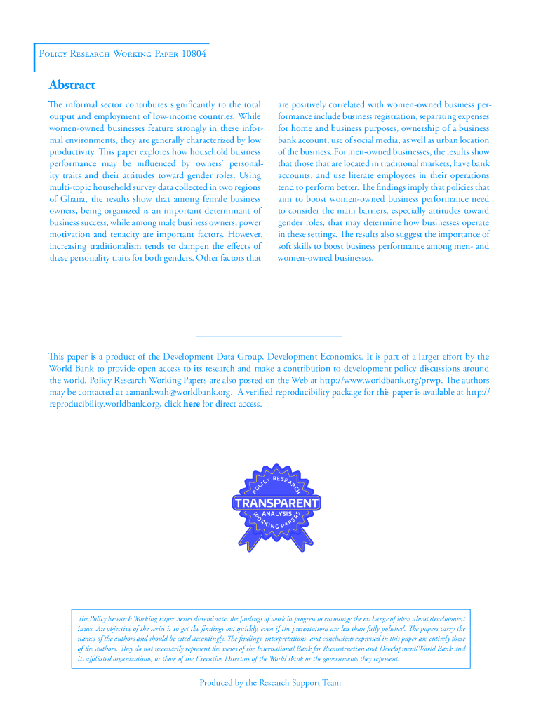 世界银行:加纳家庭企业绩效:人格特征和性别角色态度的作用(英文版).pdf