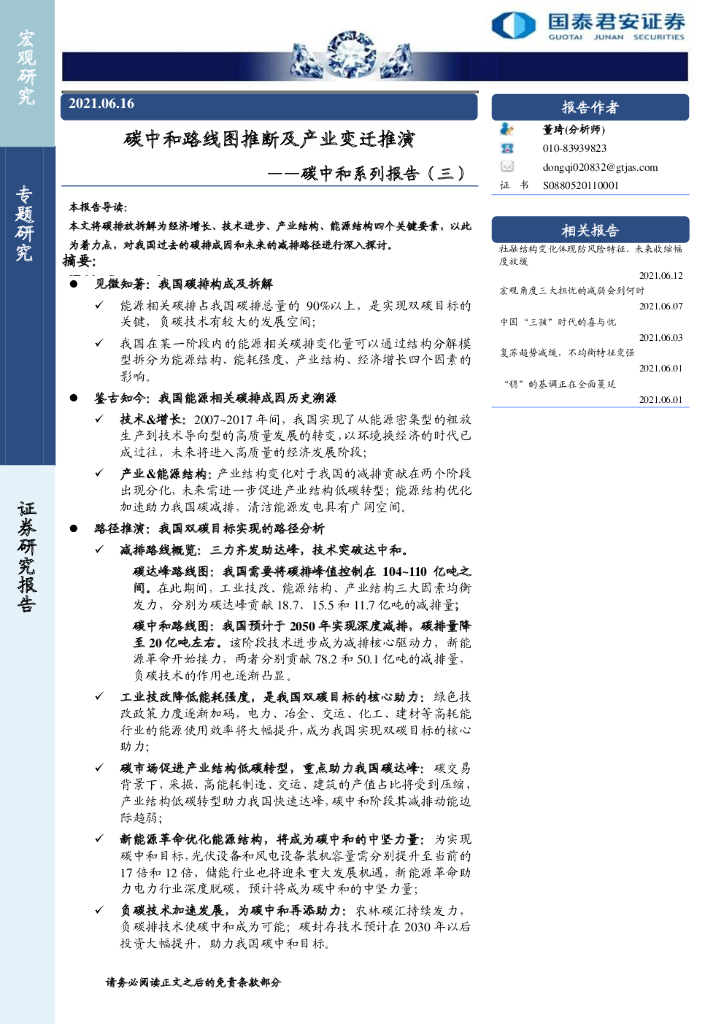国泰君安:碳中和路线图推断及产业变迁推演——碳中和系列报告(三).pdf