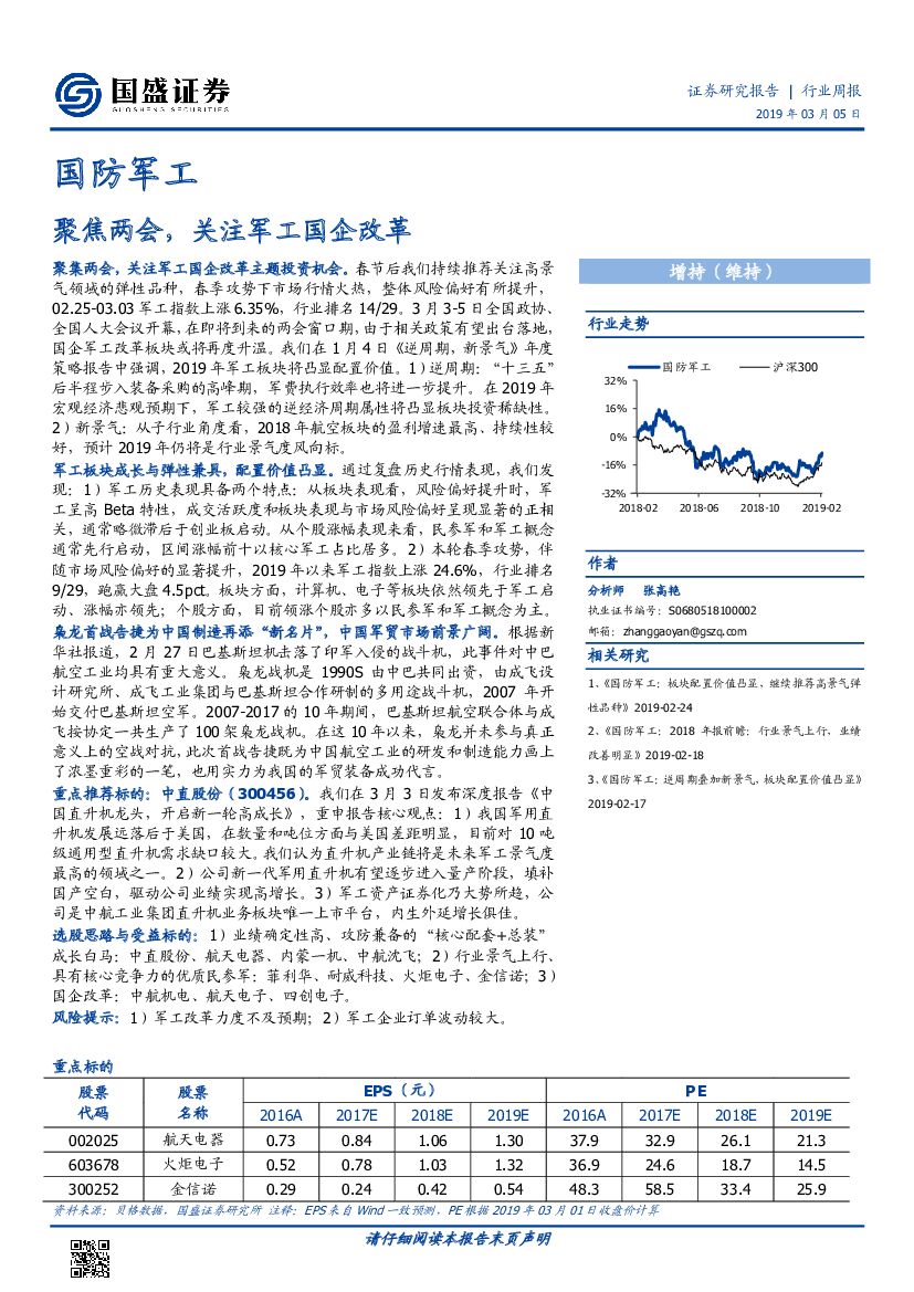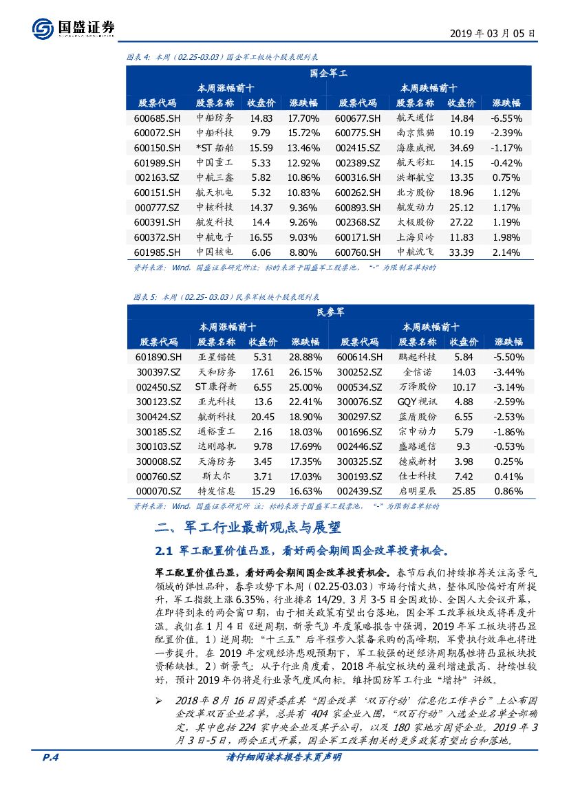国盛证券:国防军工行业周报:聚焦两会,关注军工国企改革.pdf