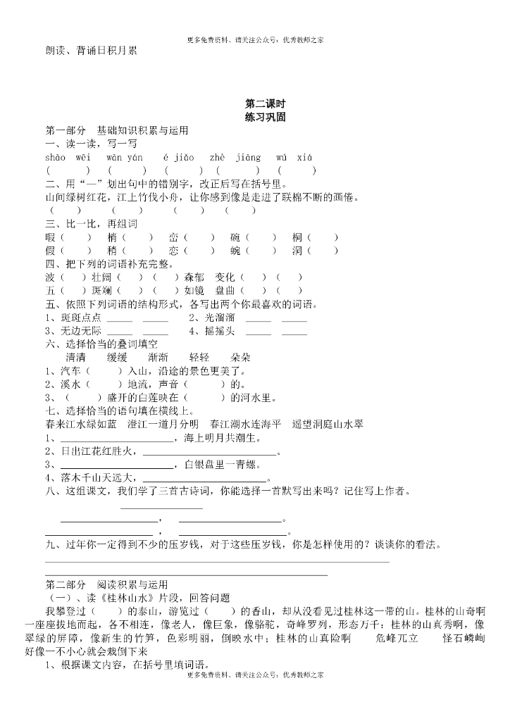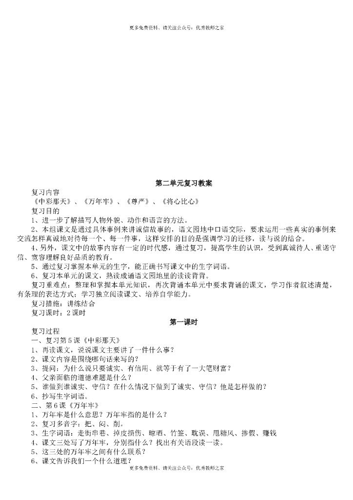 人教版四年级语文下册各单元复习教案 .doc