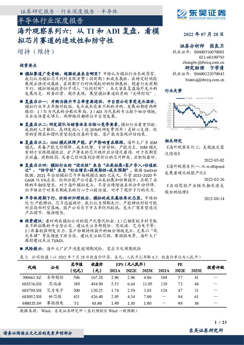 东吴证券:半导体行业深度报告:海外观察系列六:从TI和ADI复盘,看模拟芯片赛道的进攻性和防守性.pdf