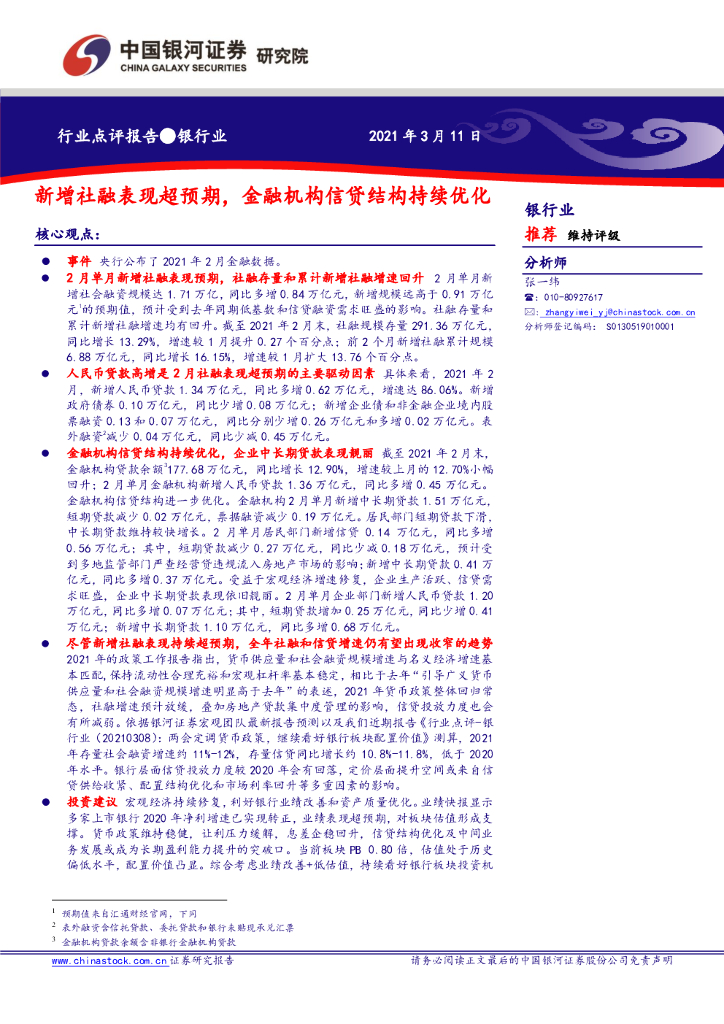 中国银河:银行业:新增社融表现超预期,金融机构信贷结构持续优化.pdf