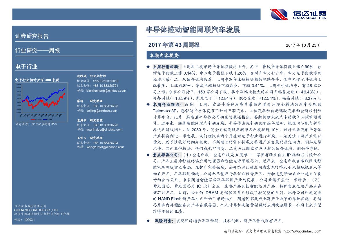 信达证券:电子行业2017年第43周周报:半导体推动智能网联汽车发展.pdf