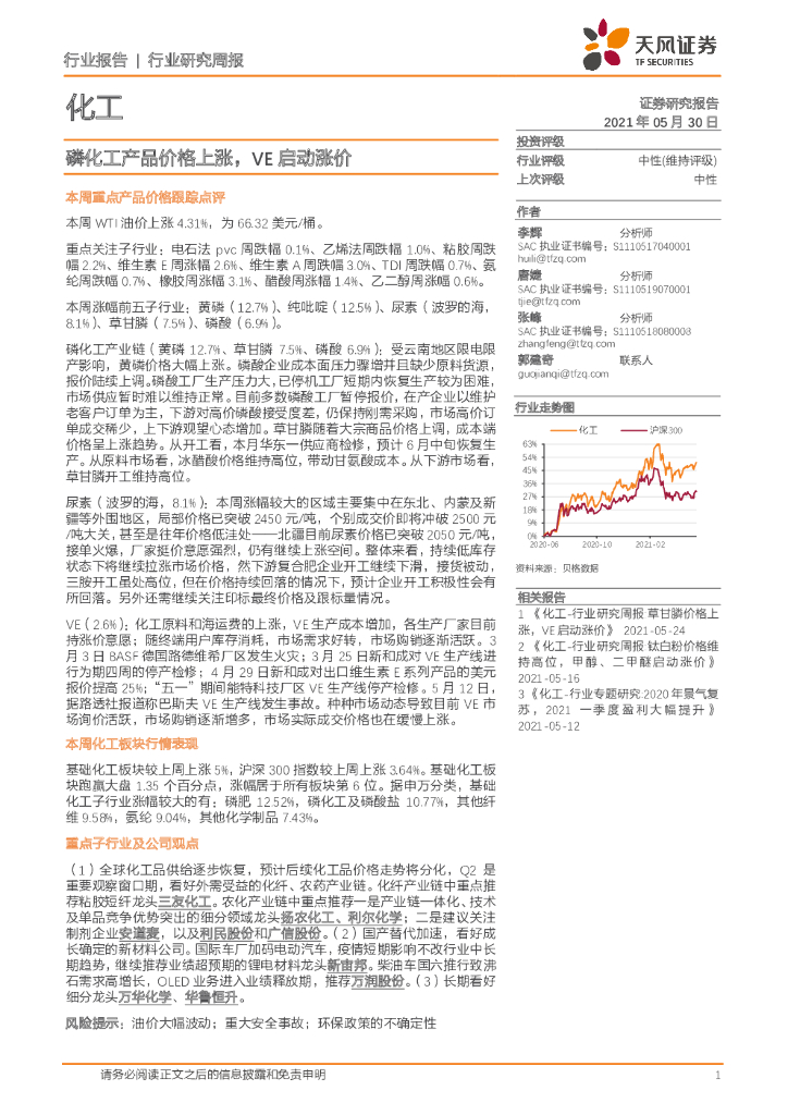 天风证券:化工行业研究周报:磷化工产品价格上涨,VE启动涨价.pdf