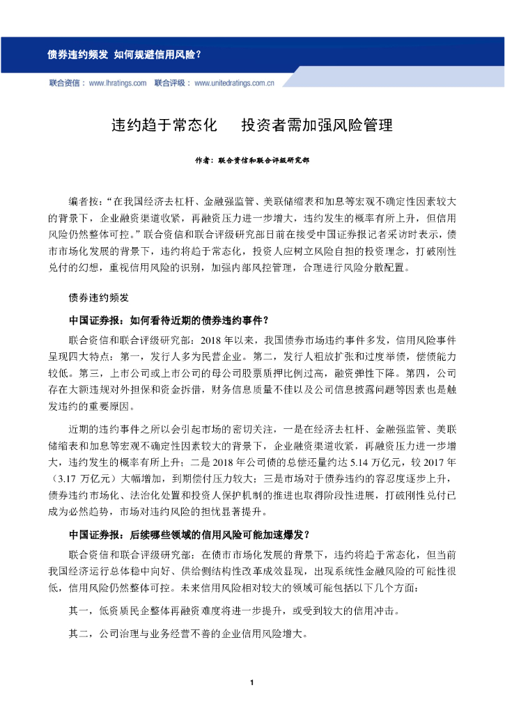 联合资信:违约趋于常态化投资者需加强风险管理.pdf