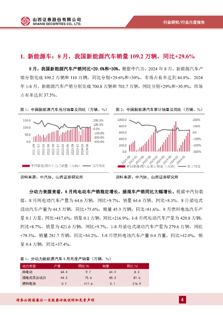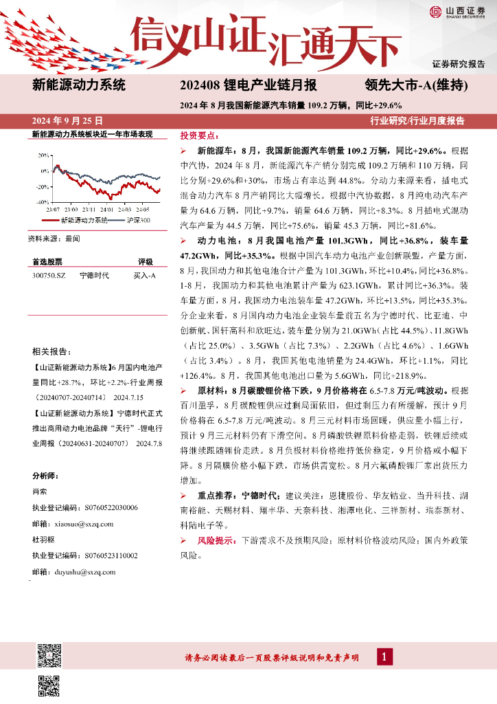 山西证券:202408锂电产业链月报:2024年8月我国新能源汽车销量109.2万辆,同比+29.6%.pdf