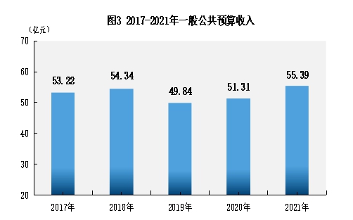 全年全市完成一般公共预算收入55.38亿元,比上年增长7.9%,其中,增值税完成14.51亿元,下降1.8%;企业所得税完成1.61亿元,下降7.0%;个人所得税完成0.63亿元,增长11.8%。完成一般公共预算支出343.20 亿元,比上年增长6.1%。其中,一般公共服务支出36.17亿元,下降21.8%;交通运输支出26.81亿元,增长1.1倍;教育支出52.12亿元,增长4.8%;卫生健康支出47.77亿元,增长16.7%;社会保障和就业支出45.94亿元,增长3.3%;农林水支出62.33亿元,下降1.7%。