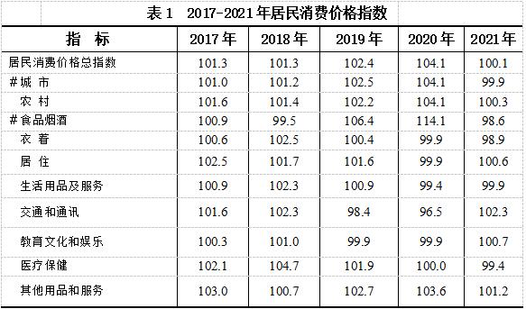 全年居民消费价格指数(CPI)为100.1%,比上年上涨0.1%,其中,食品烟酒价格下降1.4%。商品零售价格上涨1.5%。