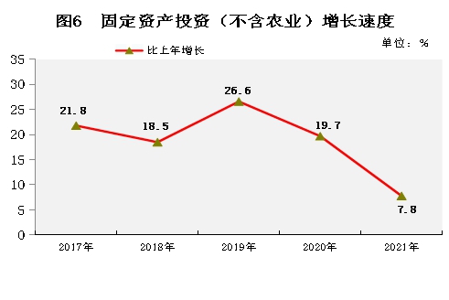 固定资产投资(不含农户)[4]比上年增长7.8%。分三次产业看,第一产业投资增长101.1%,第二产业投资增长14.8%,第三产业投资增长3.6%。