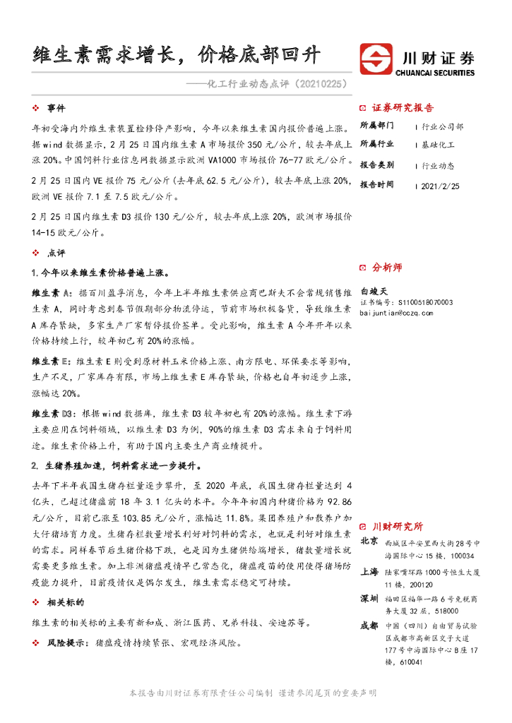 川财证券:化工行业动态点评:维生素需求增长,价格底部回升.pdf