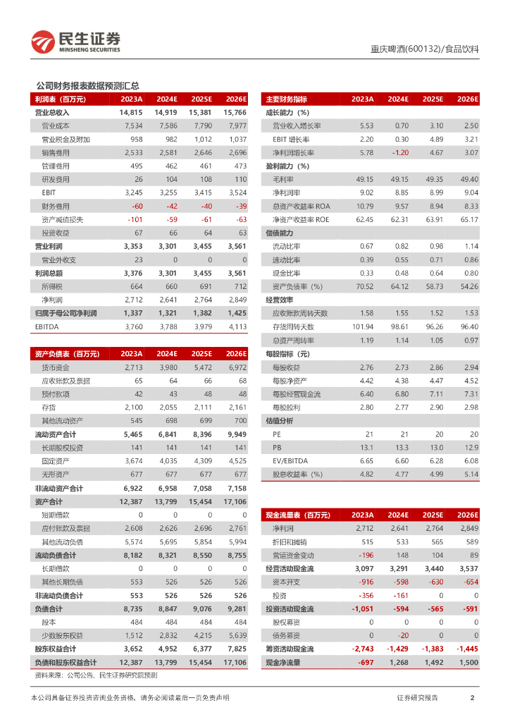 民生证券:重庆啤酒(600132)-2024年三季报点评:盈利短期承压,期待需求景气复苏.pdf