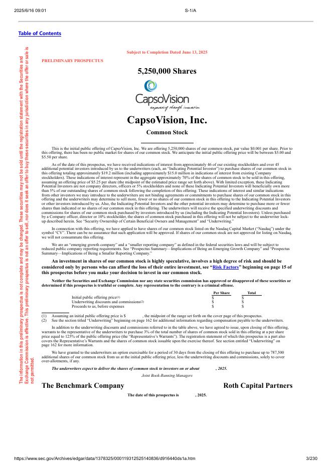 CapsoVision, Inc.美股纳斯达克IPO上市招股说明书.pdf