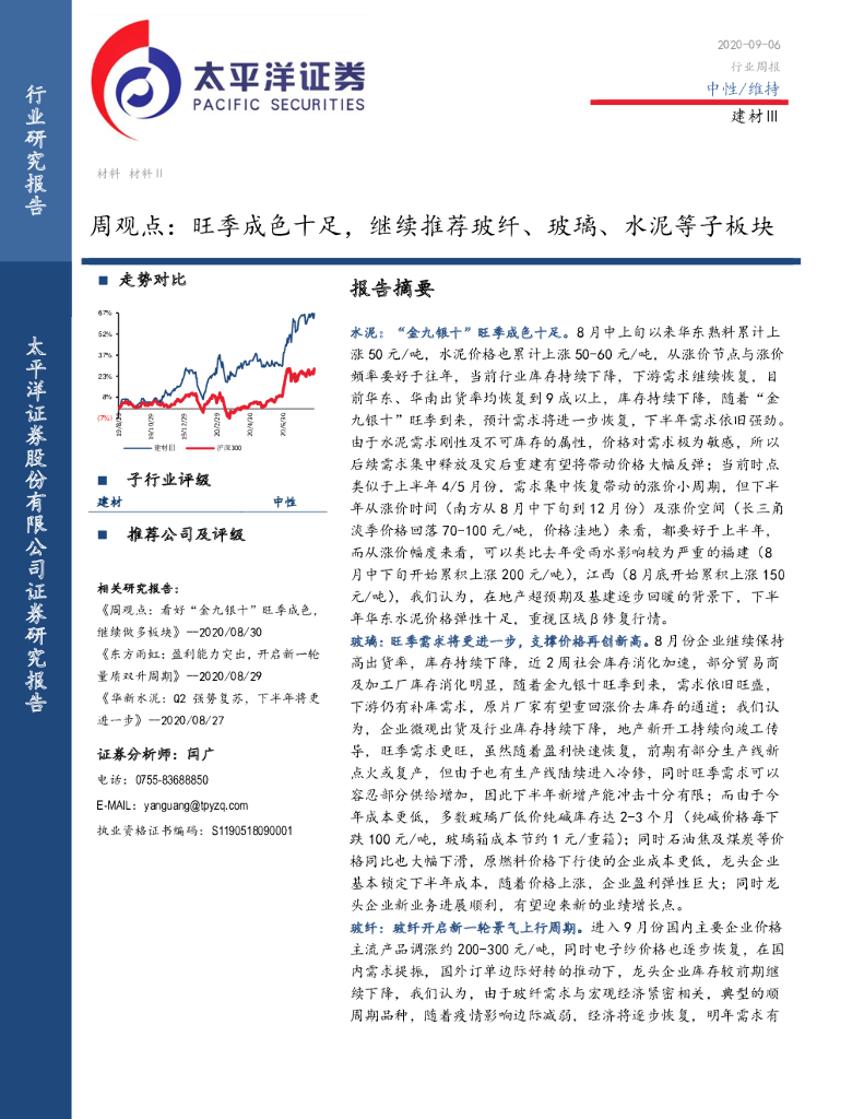 太平洋证券:建材Ⅲ周观点:旺季成色十足,继续推荐玻纤、玻璃、水泥等子板块.pdf