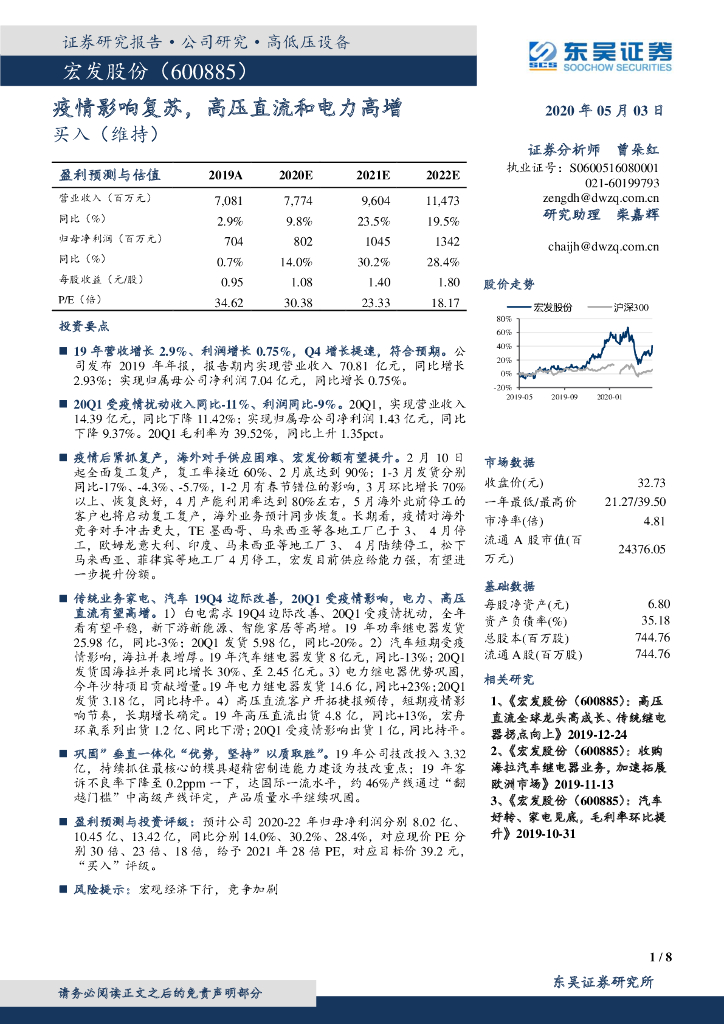 东吴证券:宏发股份(600885)-疫情影响复苏,高压直流和电力高增.pdf