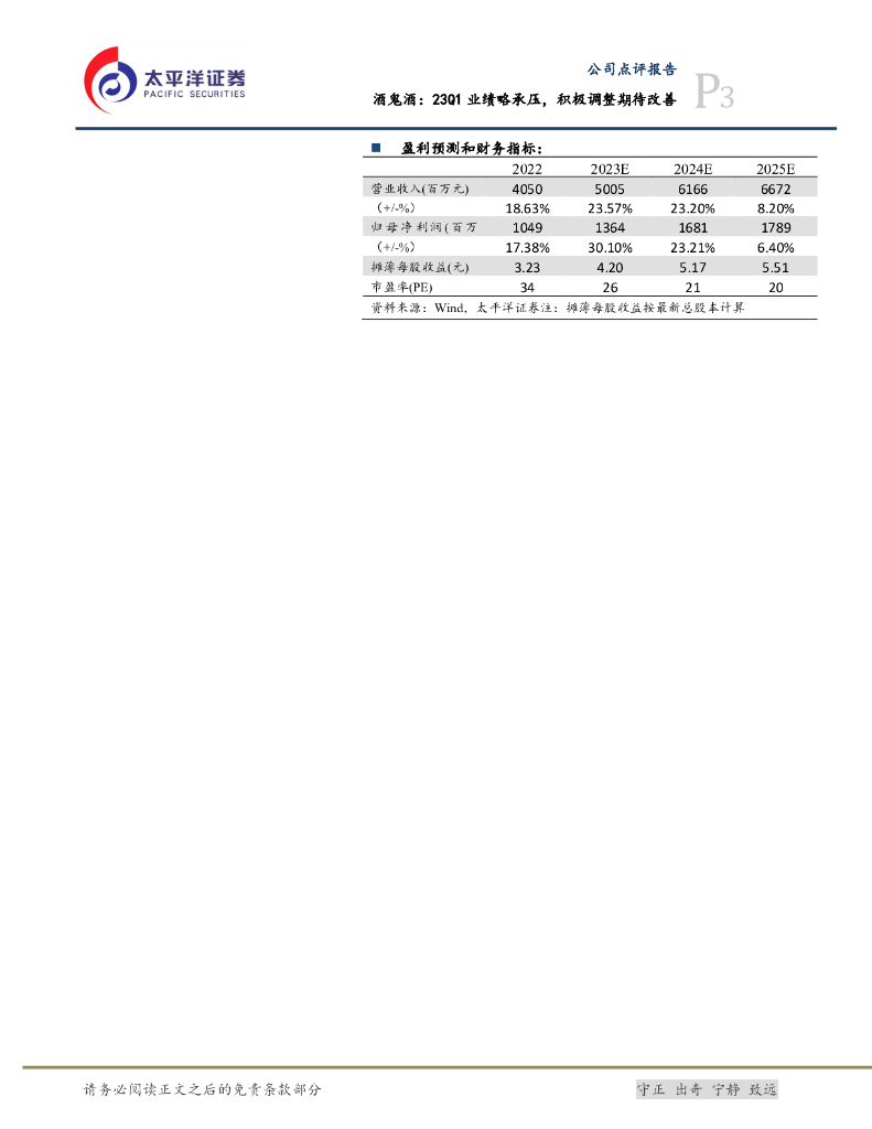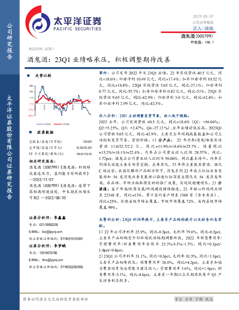 太平洋证券:酒鬼酒:23Q1业绩略承压,积极调整期待改善.pdf