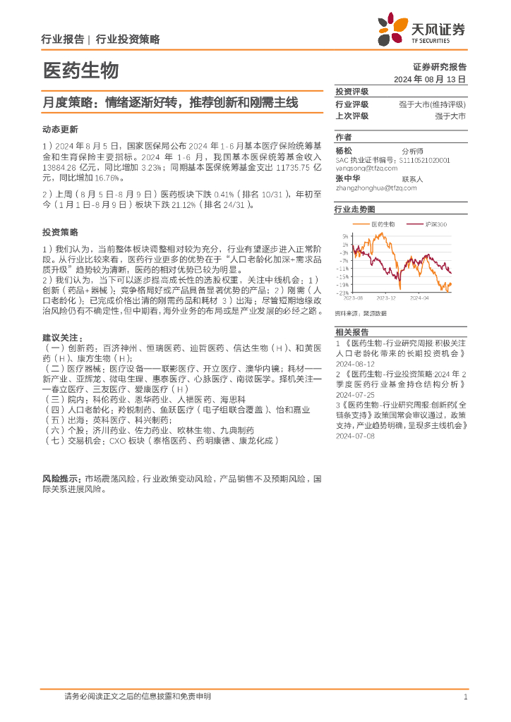 天风证券:医药生物月度策略:情绪逐渐好转,推荐创新和刚需主线.pdf