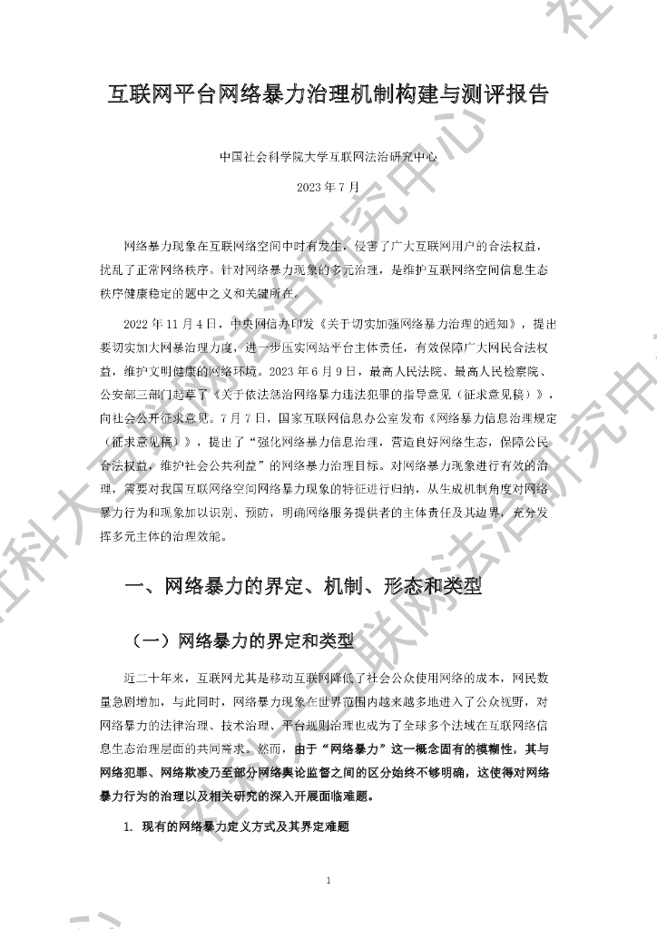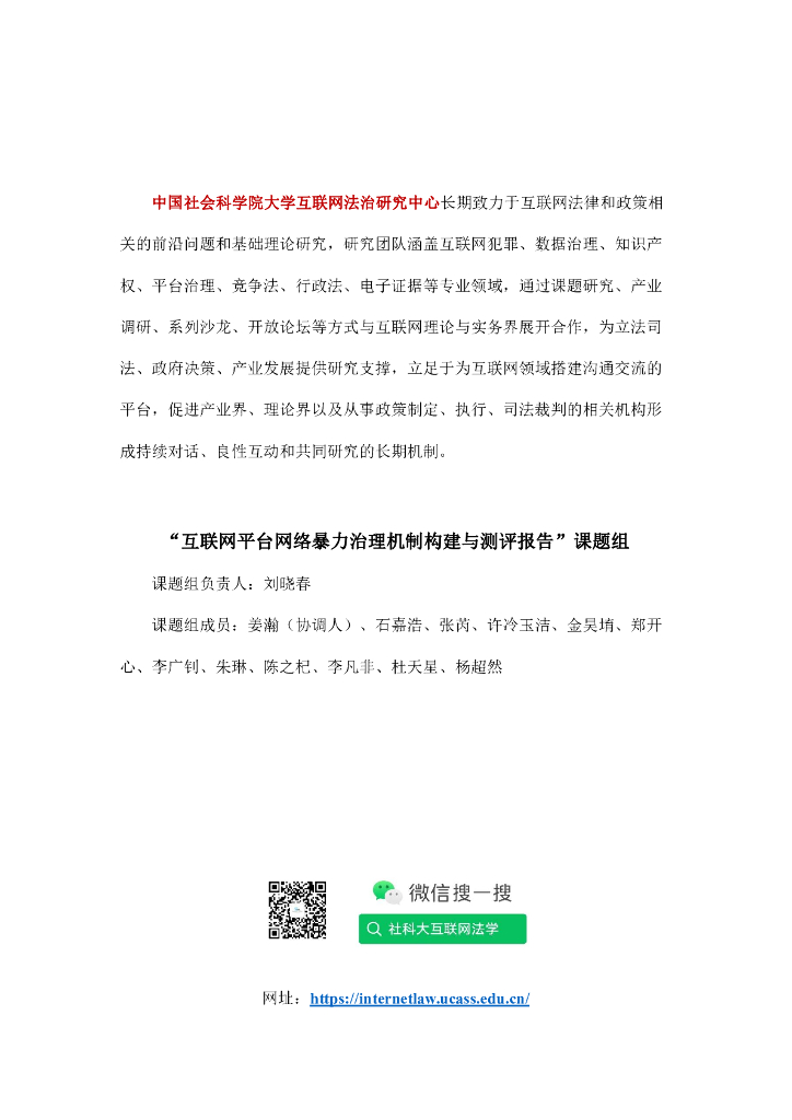 社科大互联网法治研究中心:2023互联网平台网络暴力治理机制构建与测评报告.pdf