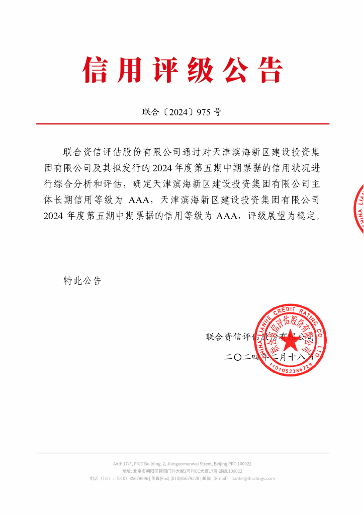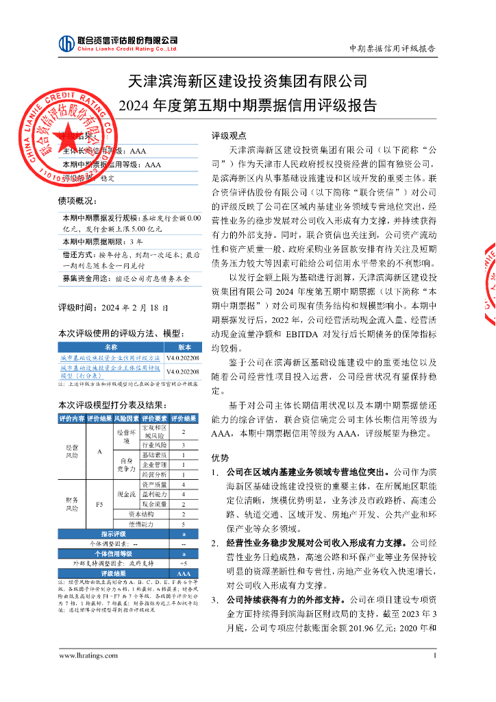 联合资信:天津滨海新区建设投资集团有限公司2024年度第五期中期票据信用评级报告.pdf