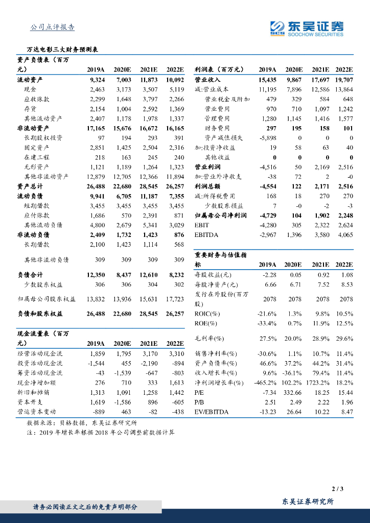 东吴证券:万达电影(002739)-疫情致业绩短期承压,长期加速尾部出清,行业集中度有望提升.pdf