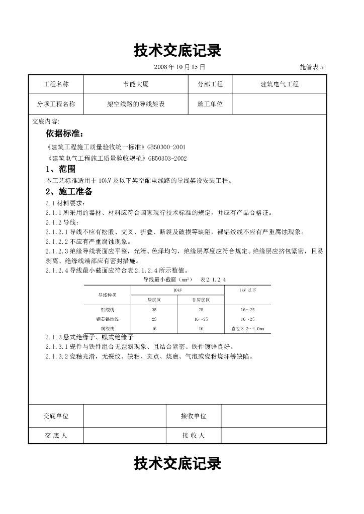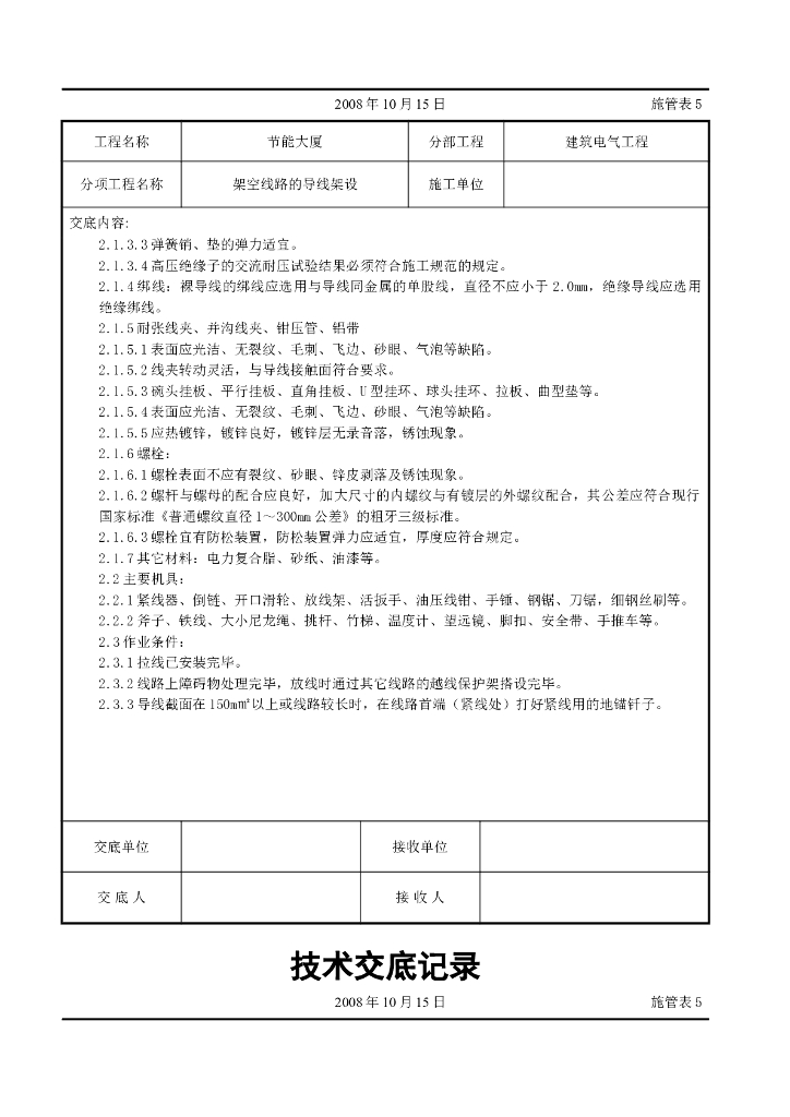 架空线路的导线架设施工交底记录.doc