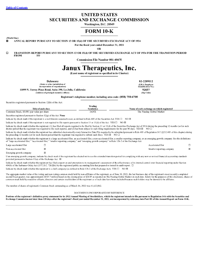 Janux Therapeutics, Inc.(JANX)2021财年年度报告(英文版).pdf