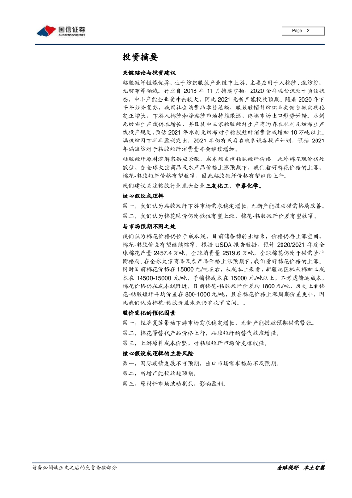 国信证券:粘胶短纤行业研究报告:粘胶短纤底部回暖,受益棉花价格上涨景气度持续提升.pdf