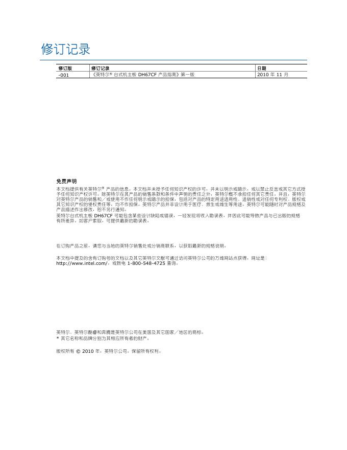 英特尔 台式机主板 DH67CF 产品指南.pdf