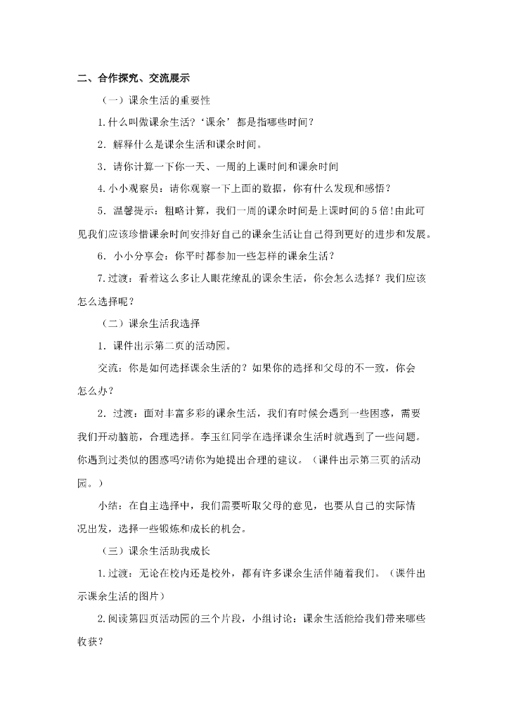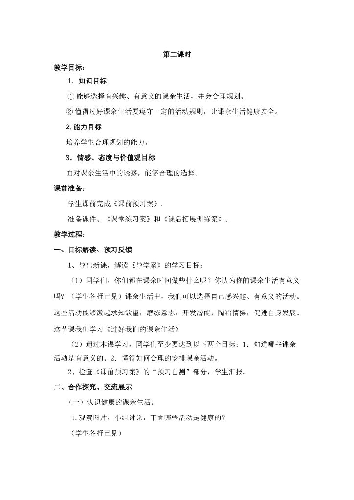 2021五年级上册 人教版小学道德与法治1.1 自主选择课余生活 1-2 课时.doc