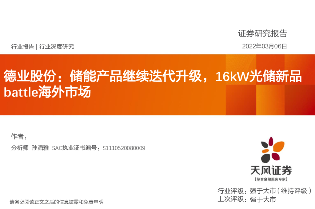 天风证券:电气设备行业深度研究:德业股份:储能产品继续迭代升级,16kW光储新品battle海外市场.pdf