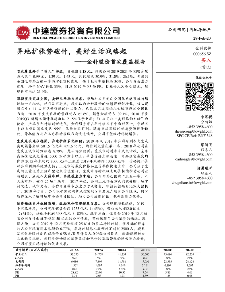 中达证券投资:金科股份首次覆盖报告:异地扩张势破竹,美好生活战略起.pdf