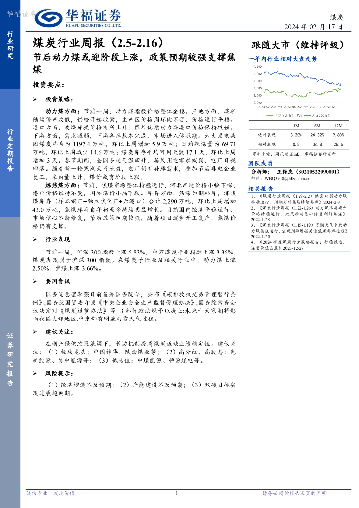 华福证券:煤炭行业周报:节后动力煤或迎阶段上涨,政策预期较强支撑焦煤.pdf