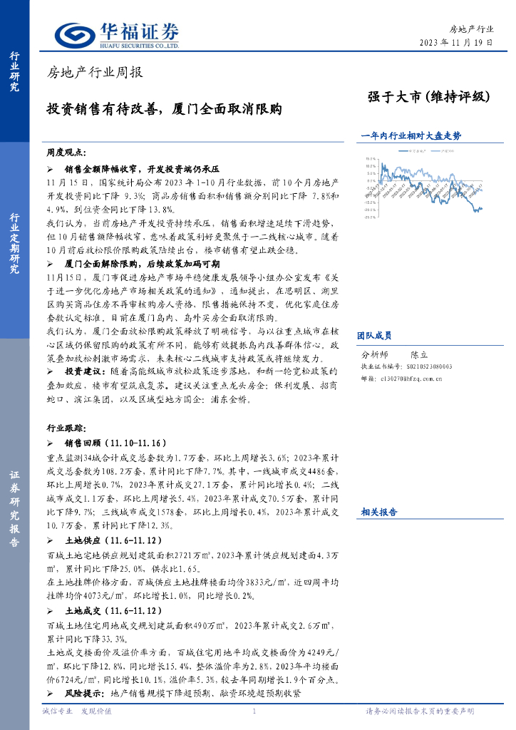 华福证券:房地产行业周报:投资销售有待改善,厦门全面取消限购.pdf