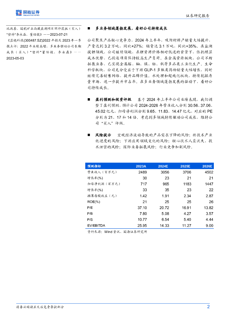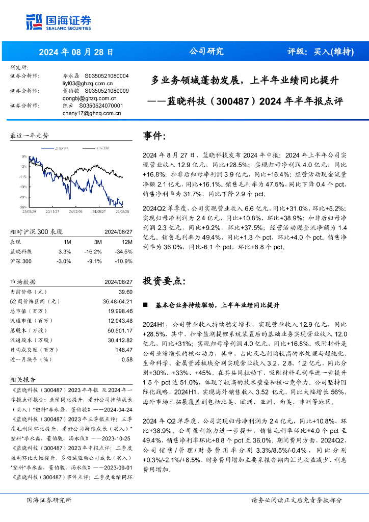 国海证券:蓝晓科技(300487)-2024年半年报点评:多业务领域蓬勃发展,上半年业绩同比提升.pdf