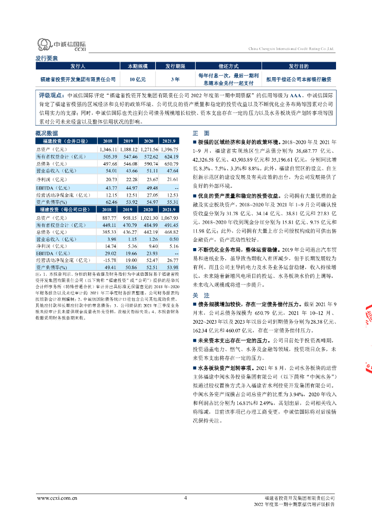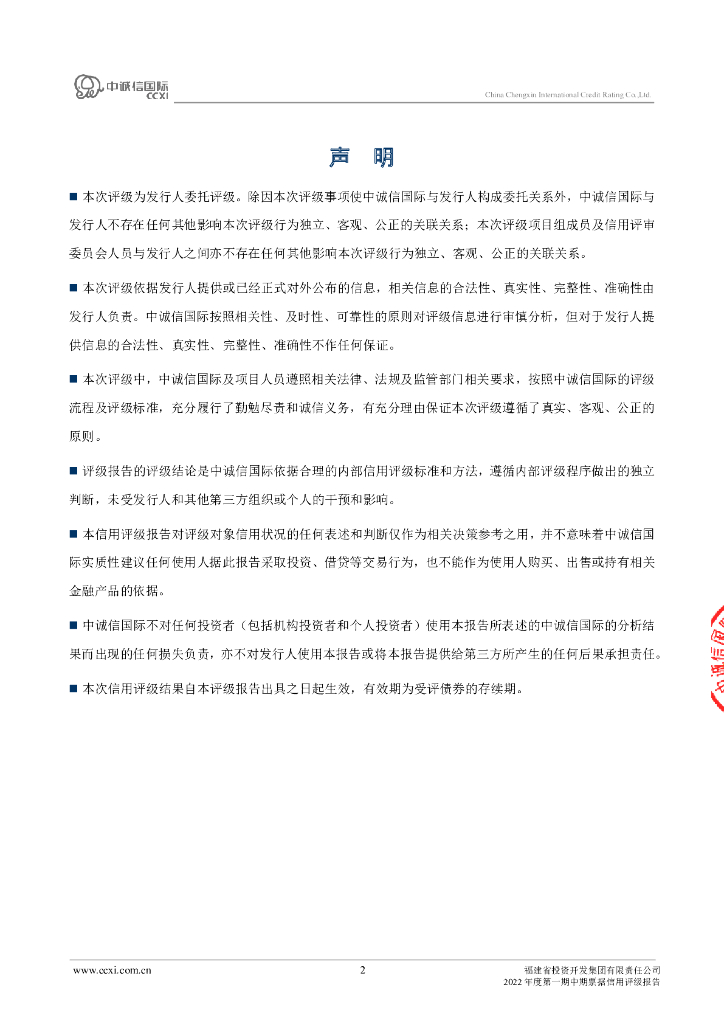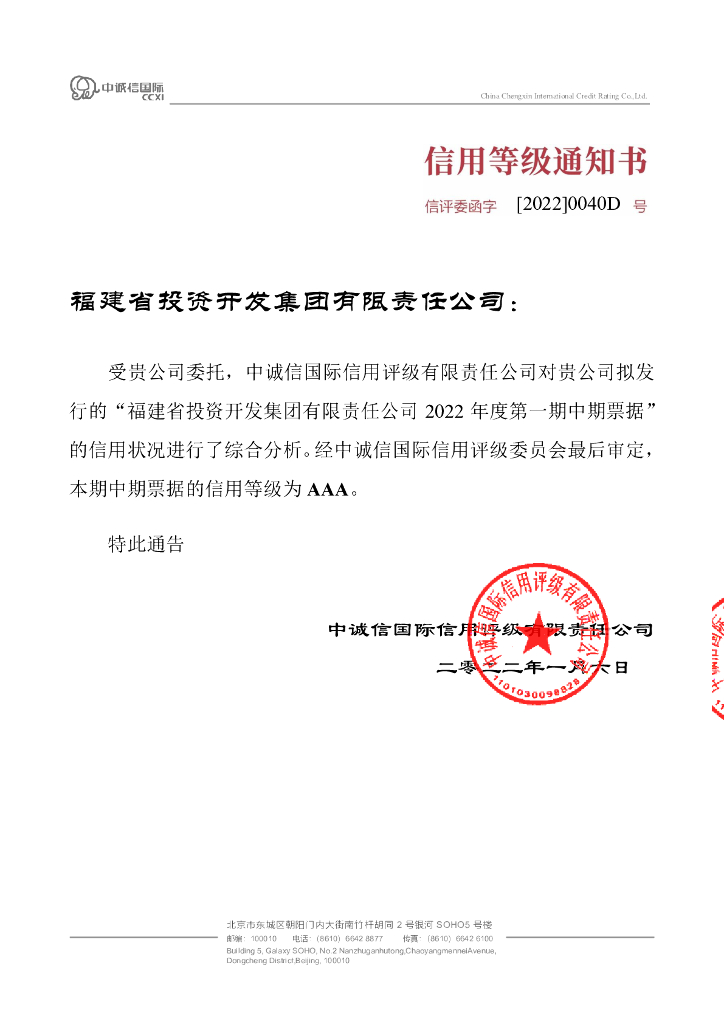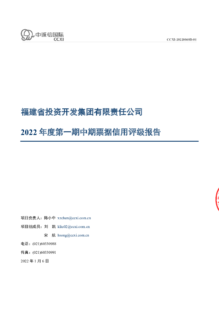 中诚信:福建省投资开发集团有限责任公司2022年度第一期中期票据债项信用评级报告.pdf