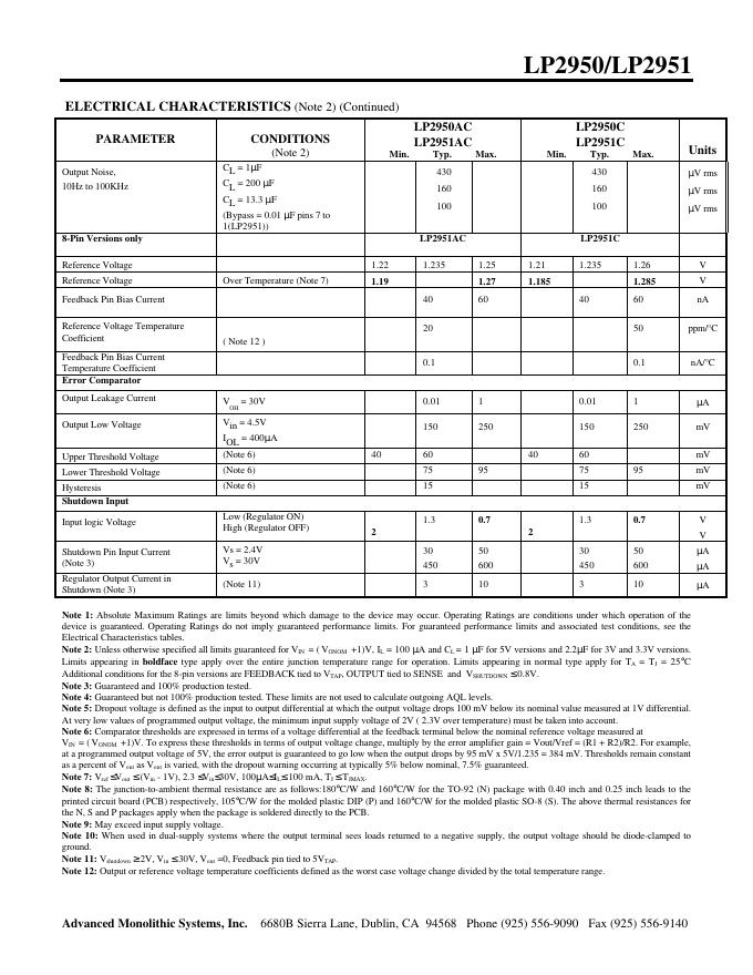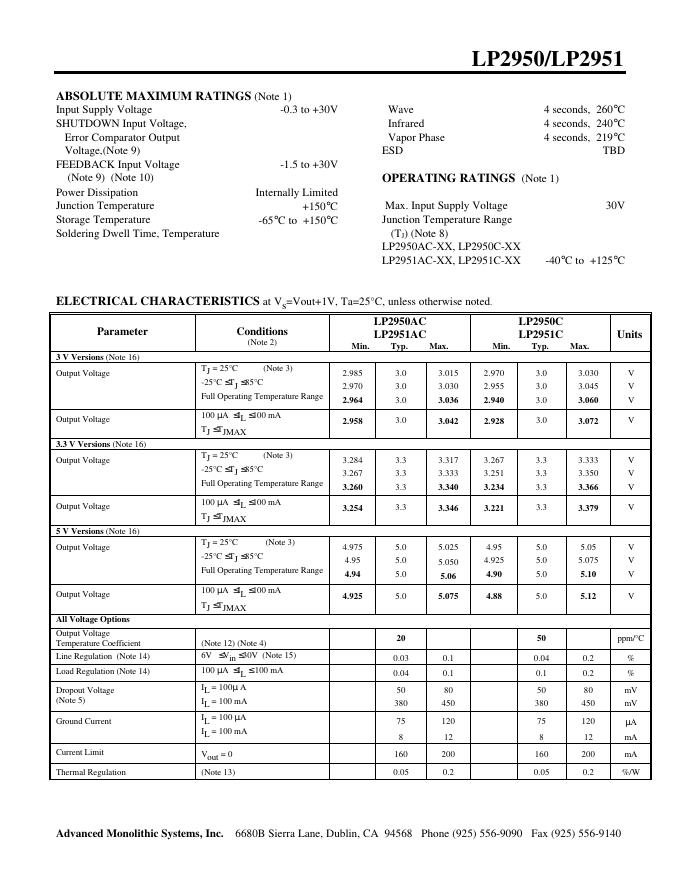 Advanced Monolithic Systems LP2950/LP2951 数据手册.pdf