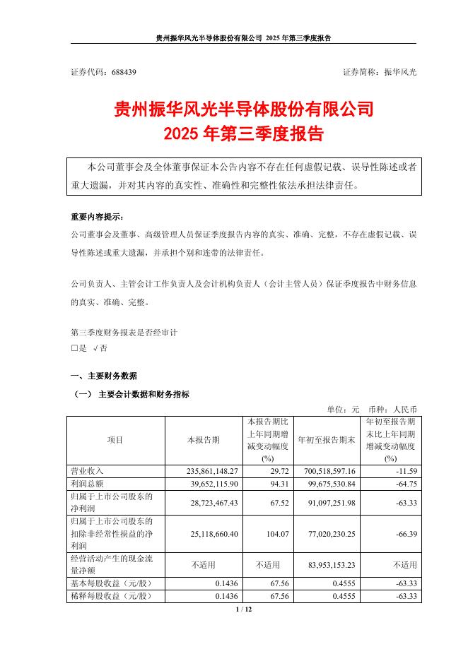 688439-振华风光:贵州振华风光半导体股份有限公司2025年第三季度报告.pdf