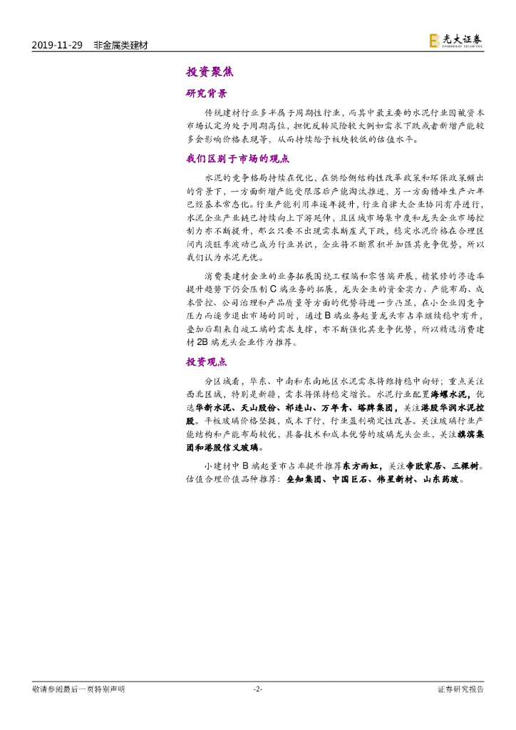 光大证券:非金属建材行业2020年投资策略:水泥无忧,消费建材精选2B端.pdf