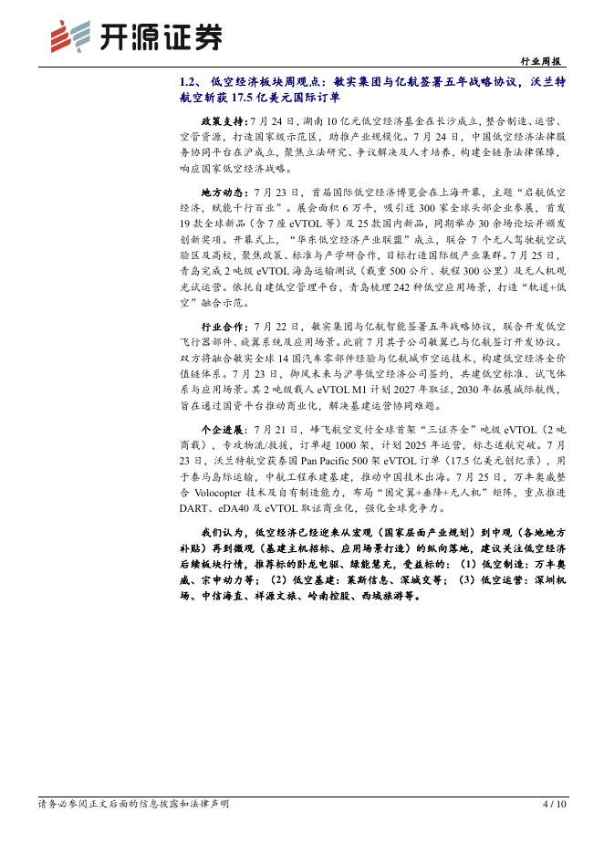 开源证券:电力设备行业周报:低空经济行业周报(第二十六期):敏实集团与亿航签署五年战略协议,沃兰特获17.5亿美元国际订单.pdf