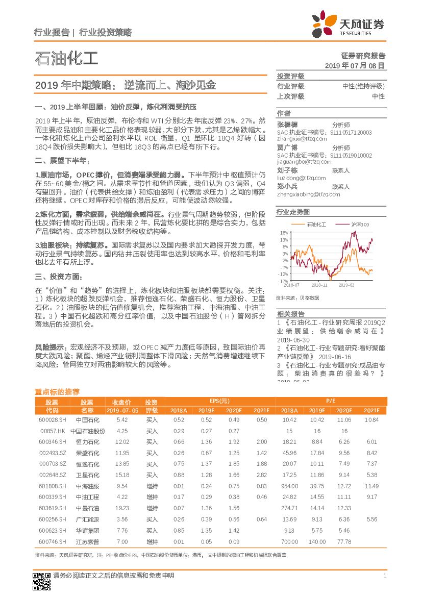 天风证券:石油化工:2019年中期策略:逆流而上、淘沙见金.pdf