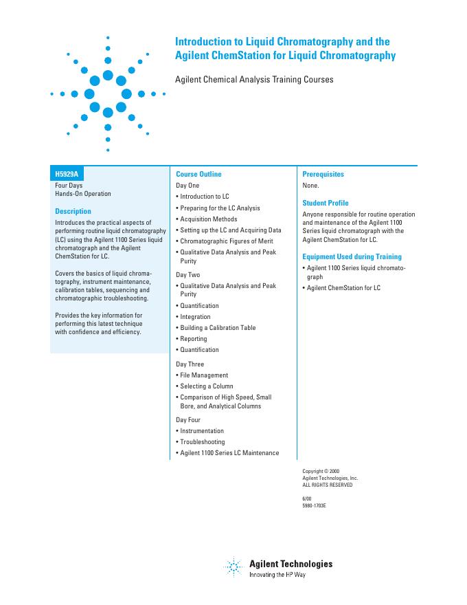 Agilent Introduction to Liquid Chromatography and the ChemStation for LC (H5929A) 数据手册.pdf